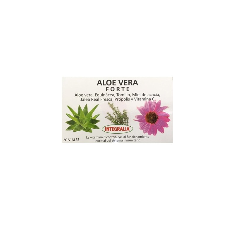 Integralia Aloe Vera Forte contém geleia real fresca, suco concentrado de aloe vera, extrato de própolis, mel de acácia, extratos de equinácea e tomilho e vitamina C.