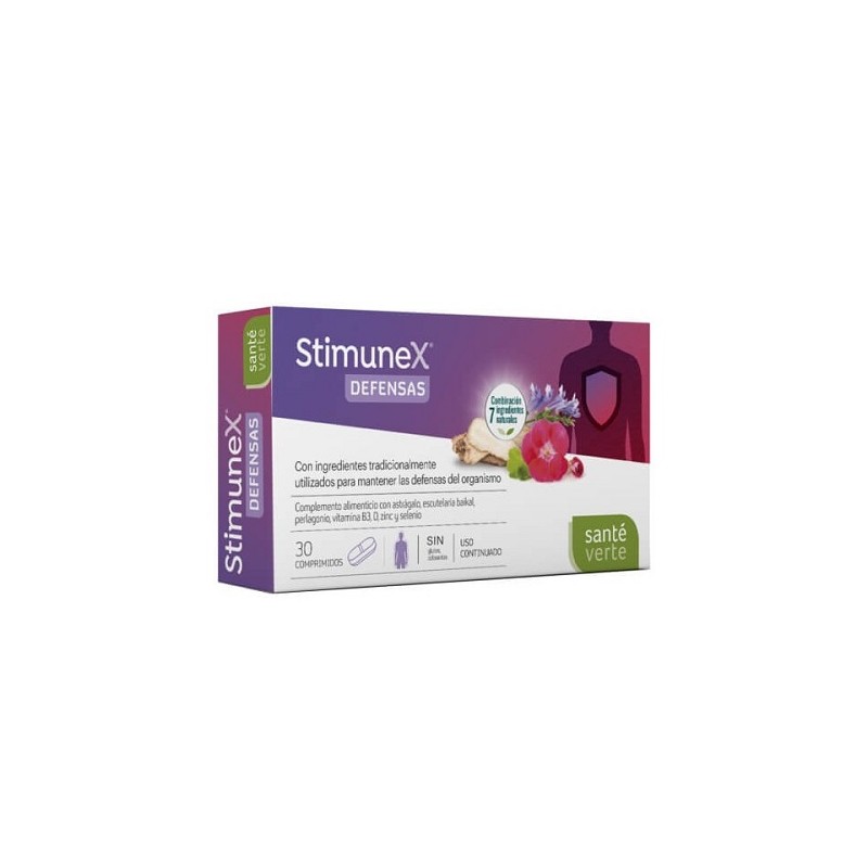 Santé Verte Stimunex Defensas é um suplemento alimentar que ajuda a fortalecer o sistema imunológico contra mudanças sazonais, particularmente durante o inverno.