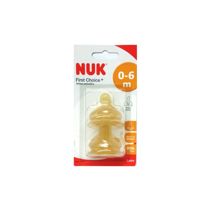 NUK Latex Nipple L +6m conjunto de duas unidades projetadas para ajudar a alimentar o bebê nos casos em que a comida é muito densa.