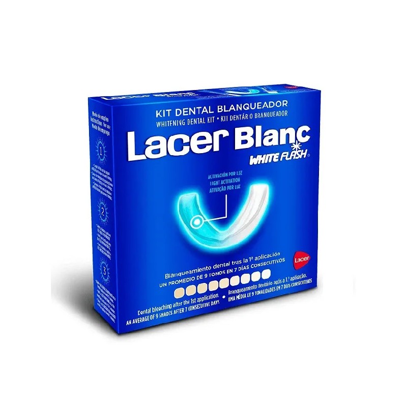 Lacer Blanc White Flash Whitening Kit é um produto desenvolvido graças a um trabalho baseado em inovação que alcança um produto eficaz para o clareamento dental: resultados profissionais em casa, baixando até 14 tons em apenas 7 dias (em testes realizados a média de rebaixamento do tom do branco dos dentes é de 9 tonalidades).