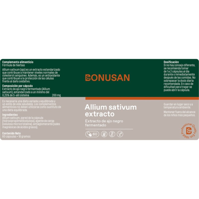 Bonusan Allium Sativum Extract é feito de alho preto sem sabor para proporcionar todas as suas propriedades com uma ingestão agradável e confortável.