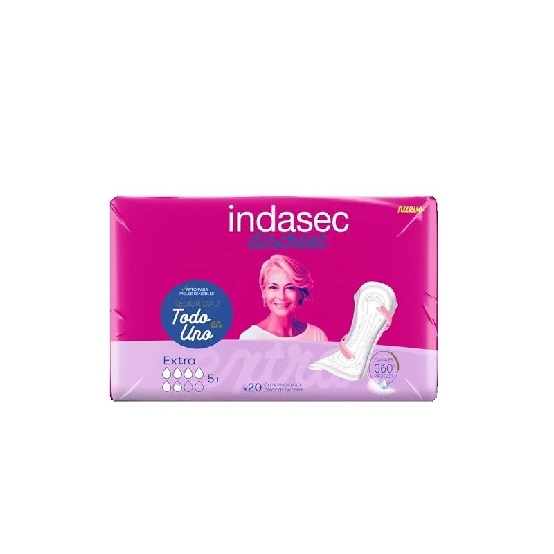 Indasec Discret Extra vem em um pacote contendo 20 unidades.
