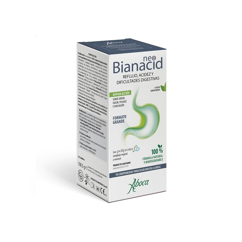 Aboca Neobianacid são comprimidos que ajudam a aliviar os sintomas de gastrite e refluxo gastroesofágico.