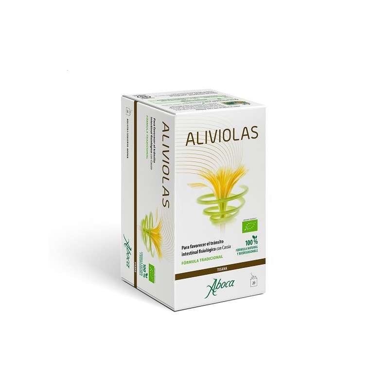 Aliviolas Bio Tisana é um produto biológico e 100% natural que, graças ao Senna, Erva-doce, Erva-Cidreira ou Alcaçuz, promove o trânsito intestinal.