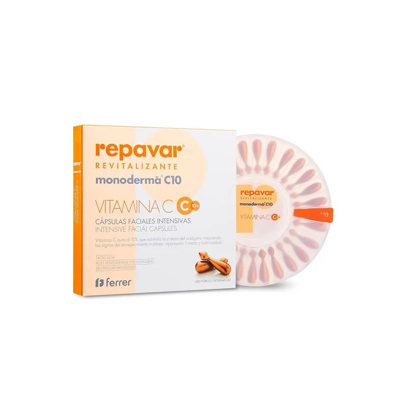 Repavar Monodermarevitaliza a pele graças à sua fórmula exclusiva à base de vitamina C pura e outros ingredientes ativos que restauram a vitalidade da pele, o que restaura a firmeza e luminosidade.