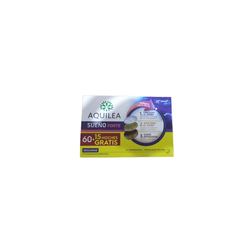O Aquilea Sueño Forte é apresentado em embalagens de 60 comprimidos, com um formato prático e fácil de transportar. Além disso, na compra deste produto, receberá um regalo de 15 comprimidos adicionais.