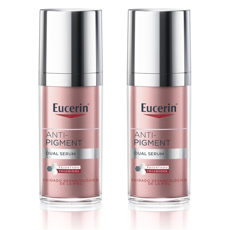 Eucerin Anti‑Pigment Dual Serum Duplo oferece dois frascos de 30 ml de sérum antimanchas que combina uma ação corretiva intensiva com proteção leve para reduzir a pigmentação e evitar a sua reaparição.