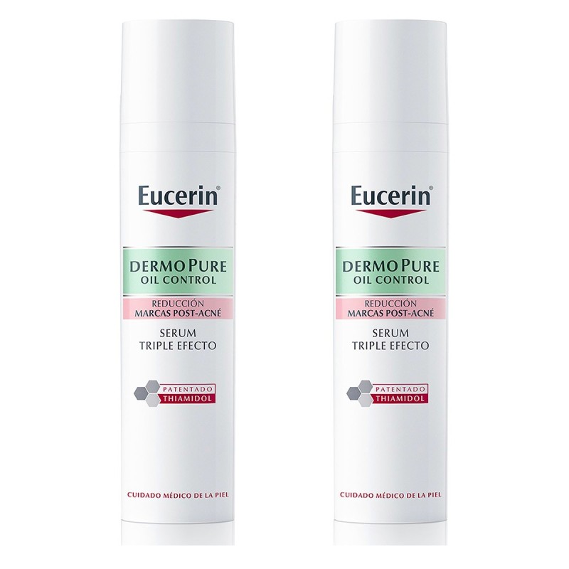 Eucerin Dermopure Oil Control Serum Duplo inclui dois frascos de 40 ml de sérum formulado para peles oleosas e propensas a imperfeições, com uma potente ação reguladora de brilho e sebo.