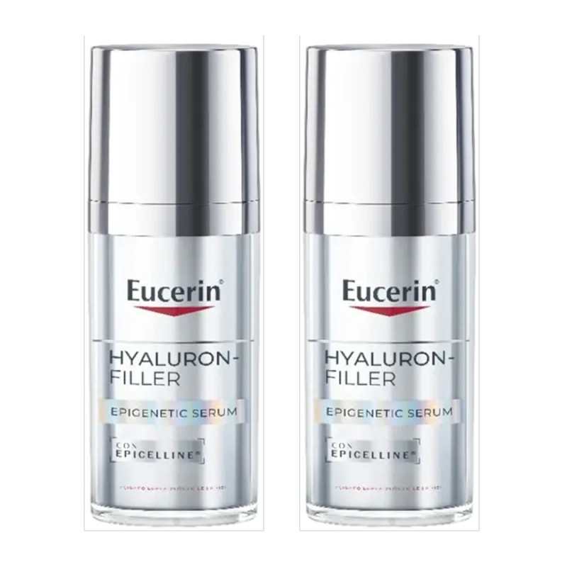 Eucerin Epigenetic Serum Hyaluron‐Filler Duplo inclui dois frascos de 30 ml do novo sérum antienvelhecimento com tecnologia epigenética, pensado para reforçar o cuidado da pele madura, preencher rugas e melhorar a elasticidade.