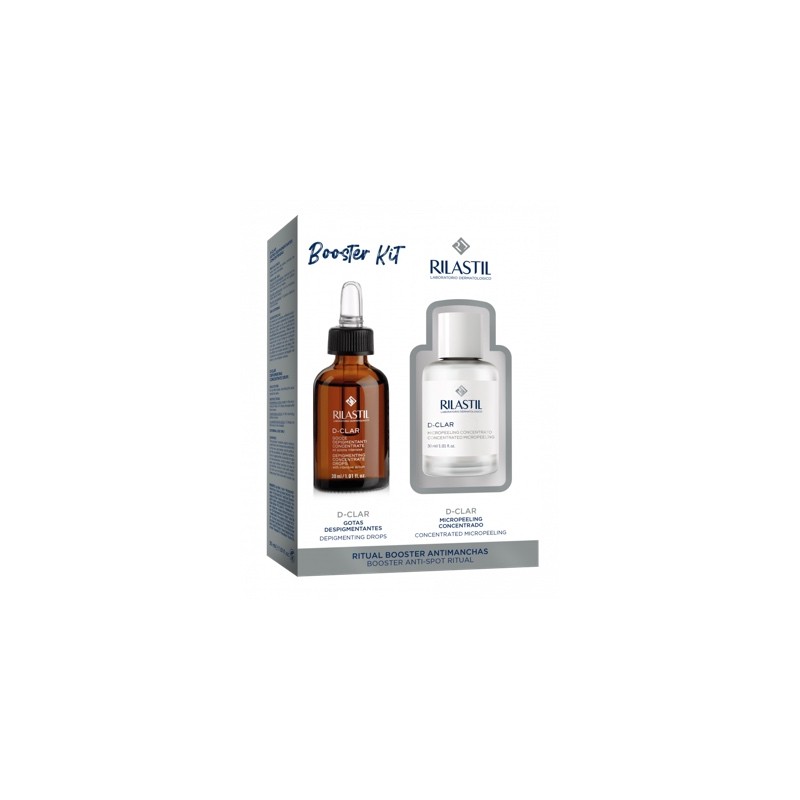 O que éRilastil Booster kit D-Clar gotas e D-Clar Micropeeling Concentrado, é um conjunto de cuidados faciais perfeito para melhorar a aparência da pele com manchas de hiperpigmentação: