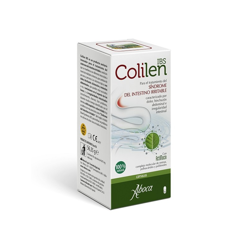 Aboca Colilen IBS 96 cápsulas é indicado para o tratamento da síndrome do intestino irritável. Com a ação de ActiMucin, um complexo molecular patenteado (IT 102012902020829) de resinas (de incenso), polissacarídeos (de Aloe Vera) e polifenóis (de camomila e erva-cidreira), que passa a interagir com a superfície da mucosa criando uma película protetora que permite a permeabilidade intestinal normal.