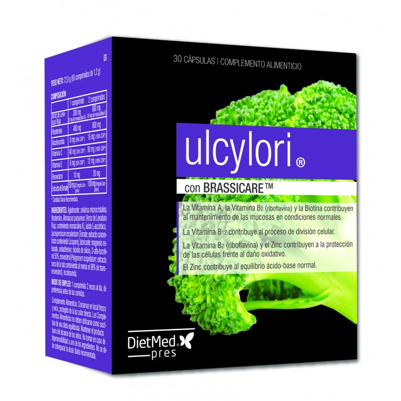 O que éDietMed Ulcylori com Brassicare é um suplemento dietético que pode ajudar a proteger a mucosa gástrica, pois contém propriedades antioxidantes. É composto por vitamina A, nutriente essencial para a visão, crescimento, divisão celular, reprodução e imunidade. É ideal para pessoas que têm uma dieta pobre ou uma dieta limitada.