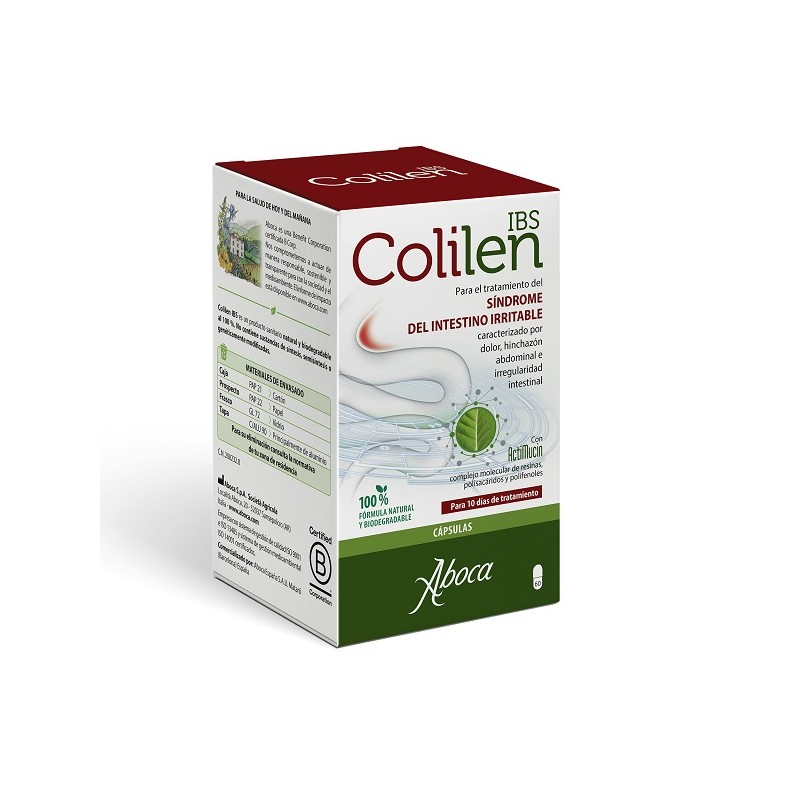 Aboca Colilen IBS 60 cápsulas é indicado para o tratamento da síndrome do intestino irritável. Com a ação de ActiMucin, um complexo molecular patenteado composto por resinas, polissacarídeos e polifenóis, que interage com a superfície da mucosa criando uma película protetora que permite a permeabilidade intestinal normal.