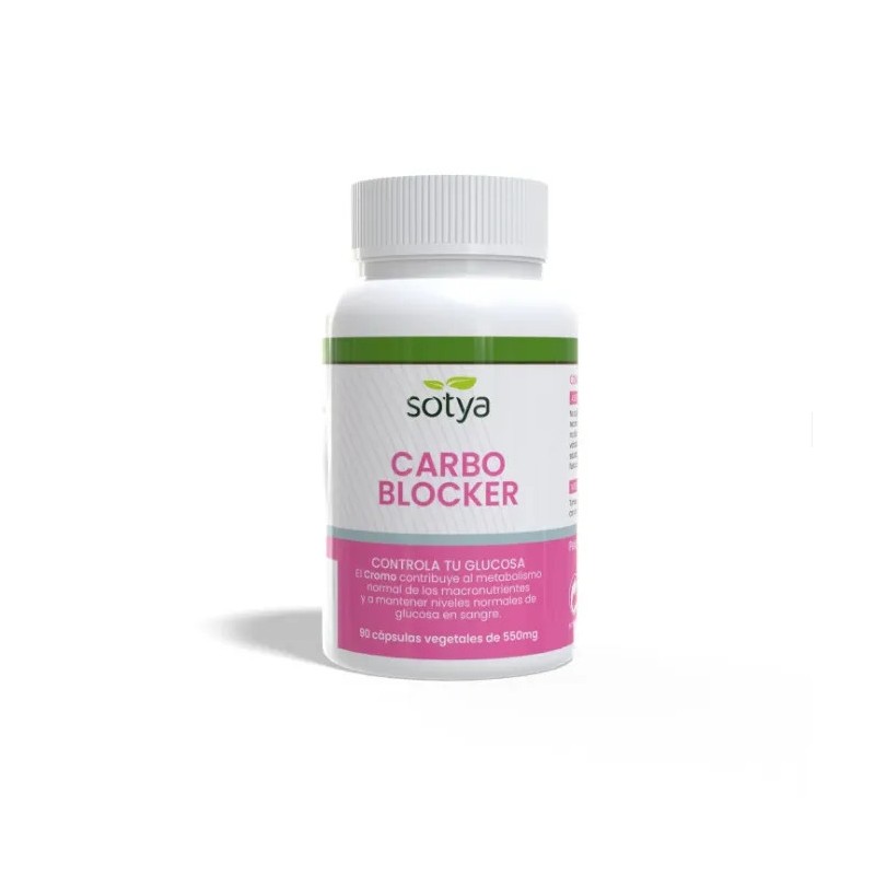 O suplemento alimentar Carbo Blocker Sotya é apresentado numa embalagem contendo 90 cápsulas.