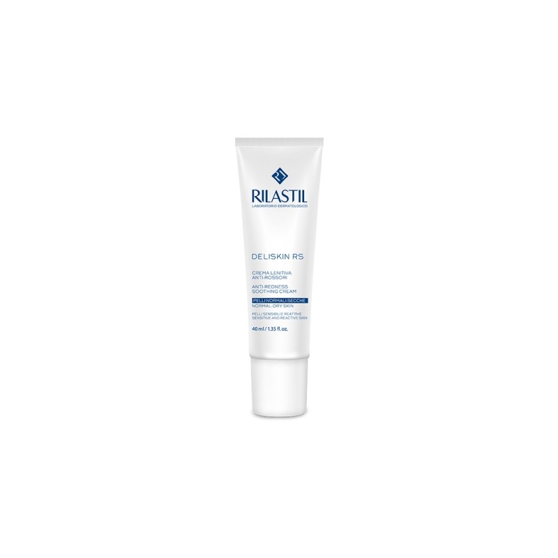 Rilastil Deliskin Cream vem em uma caixa que inclui um recipiente de 40ml.