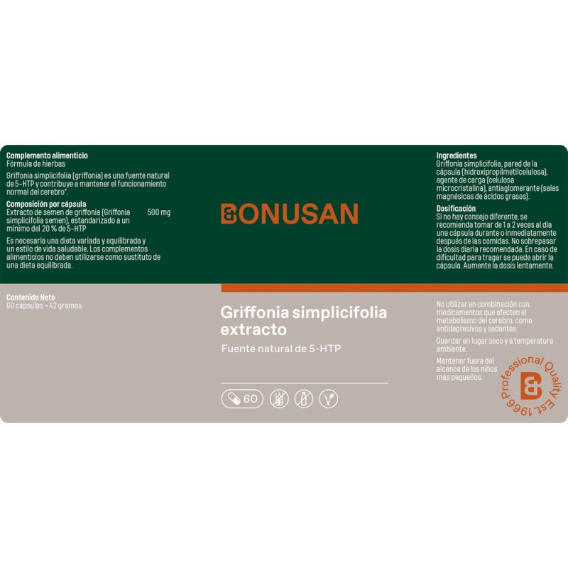 Bonusan Griffonia simplicifolia é um suplemento alimentar natural indicado para apoiar o sistema nervoso, pois ajuda a relaxar e reduzir os níveis de estresse. Sua fórmula promove a concentração, ajuda a pensar com mais clareza quando precisa tomar decisões e proporciona maior resiliência mental.